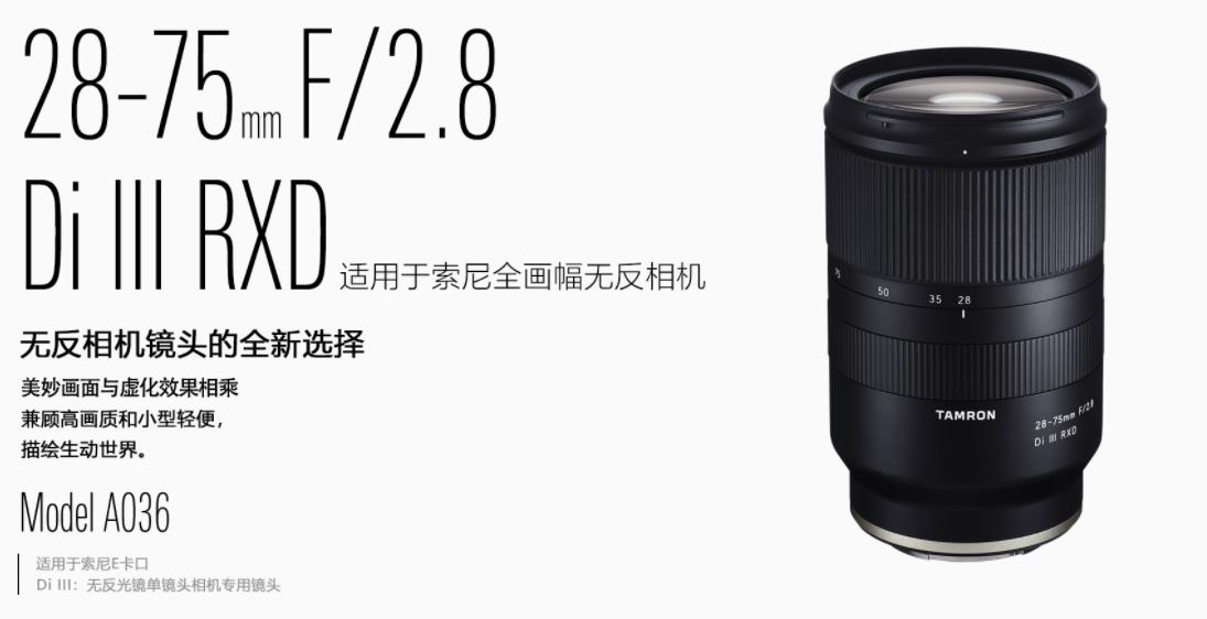 適用于全畫幅無反相機,F/2.8大光圈標準變焦鏡頭小小的鏡頭中積聚了騰龍的尖端技術,特別針對無反相機進行了全新設計。28-75mm F/2.8 Di III RXD(型號A036)兼具高解析力與柔和虛化效果,是用于索尼E卡口的35mm全畫幅單鏡頭無反相機大光圈標準變焦鏡頭。鏡頭使用了多種特殊玻璃材質,有效抑制各種像差,全焦段均具有穩定的解析性能,并且高畫質與小型輕便兼具。騰龍特有的BBAR寬頻抗反